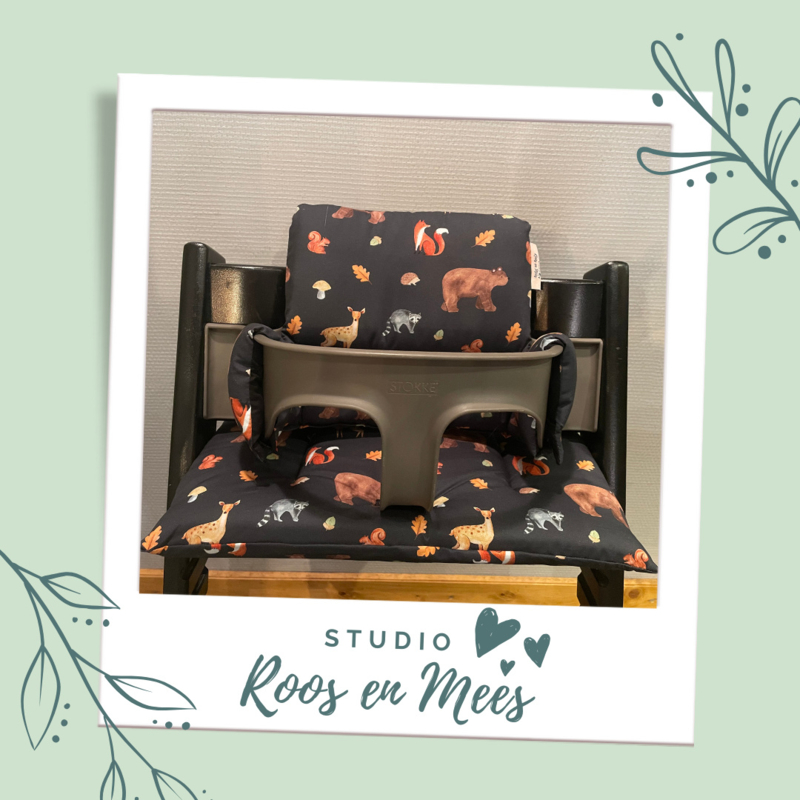 Tripp Trapp kussenset - katoen - bosdieren op donker blauw