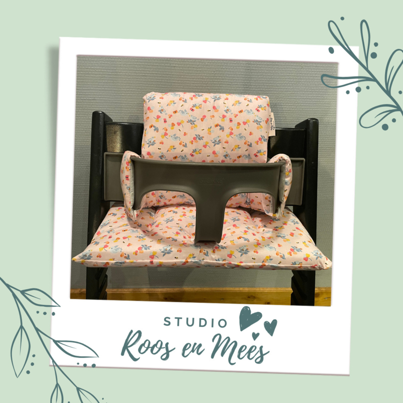 Tripp Trapp kussenset - katoen - vogels en bloemen op roze