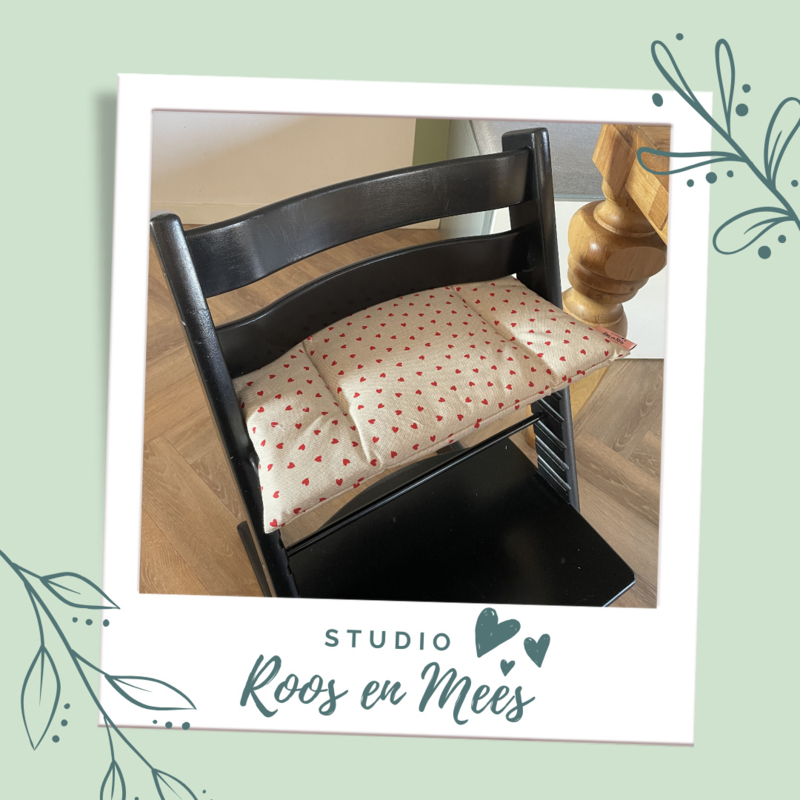 Tripp Trapp los zitkussen - decoratiestof - rode hartjes op zand