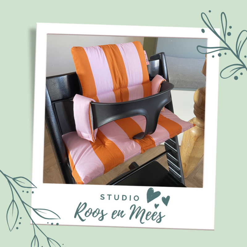 Tripp Trapp kussenset - katoen - strepen roze en oranje